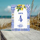 This elegant bridal shower table number card features a graceful white arch shape beautifully set against a vibrant Italian mosaic blue tile backdrop, adorned with luscious, sun-kissed lemons and fresh green leaves. The table number is displayed prominently and elegantly in bold typography, ensuring clear visibility for your guests. Below the number, the bride-to-be's name and "Bridal Shower" in elegant typography, along with the event date, are beautifully presented, adding a personal touch to each table.