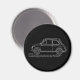 Behold, our exquisite round magnet, a fusion of artistry and functionality that pays homage to the legendary cinquecento. At its heart lies a captivating sideview blueprint drawing, meticulously etched in white, capturing every intricate detail of this iconic Italian Oldtimer. As your gaze traverses the blueprint, you're drawn to the bold outline of the word "cinquecento," elegantly crafted in white, a testament to the enduring allure of classic cars.
