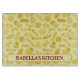 Unique food patterned kitchen chopping board, printed with various Italian pasta illustrations. There's a customisable text area for you to add a name or message or you can delete this if you prefer