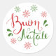 Green and Red Merry Christmas (Buon Natale) text in Italian and snowflakes with Italian flag colors.