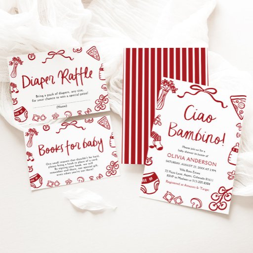 Italian Red Hand Drawn Pizza Pasta Baby Shower Invitation