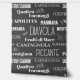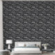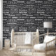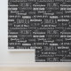 Stylish charcoal grey and white wallpaper featuring a typographic pattern of traditional Italian restaurant pizza names