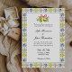 Plain white envelopes are included with paper invitations and will come to fit the invitation size you select. If you don’t need the envelopes, you may choose to not receive them by selecting the dropdown below "Envelopes" and choosing "None." If you’d like to have a design on your envelopes, you can browse all of these available envelopes to find the design that complements your Italian Tile Border With Lemons Bow Wedding Invitation.