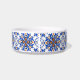 This is a heavy, durable bowl decorated with Tibbies of many colors, the perfect size for hungry/thirsty Tibs. The design is interesting and printing clear.