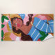 I was so excited to get this towel! It was a gift for my sister's 50th birthday surprise in Key West! The towel was excellent quality, better than I expected! She loved it! Colors were vibrant, the towel was extra large, attached is a photo, my husband is 6' tall ... so you can see how big it is compared to his height. Thank you ZAZZLE for an amazing, gorgeous product!