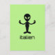 Italien italian alien funny word pun postcard with an alien and a funny punny slogan: "Italien". A unique funny fan card for italian sci-fi geeks and Italy fans.