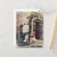 Florence Firenze Italia Italy Italian with a little Scooter on Cobblestone parked by a Restaurant's Door POST CARD POSTCARD - Artistic Creative Unique Artist Digitally Enhanced Photo Painting.