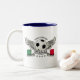 Vintage style mug design for Italy national team supporter featuring a soccer ball with wings, the Italian flag and chant - Forza Azzurri - and champion stars.
