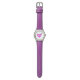 I had two concerns when ordering this watch - one that the watchband didn't look that glittery and two that the dial would be too large. Neither was a problem at all. The watch band is nice and glittery for a touch of bling. As to the size, I have small bones so I tend to like smaller looking accessories and I am quite comfortable with this. Neither too large or too small. The outside edge to edge on the dial is 1 1/4" the inside image is 1 inch.