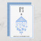 Customize your own "It's a Baby Boy" pregnancy announcement. This design features the text "It's a Baby Boy" in bold letters with black and blue text on the front with a pretty blue baby crib mobile. The color of the text and font can be changed to your liking. Customize with the date of your expected arrival.