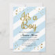It's a Boy Baby Shower Blue Stripe Gold Invite