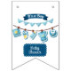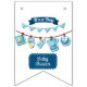 This bunting banner feature the words "It's A Boy Baby Shower" in a unique print font with white letters blue background with clothes on a line in this baby boy theme and style. All banners have single sided printing outdoor safe made with sturdy plastic polystyrene and thick plastic rope has (16) 5.5" x 8" swallowtail flags on a 6' long string.
