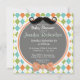 Cute, funny Boy baby shower design on colorful argyle pattern; orange, green, teal, and yellow pattern. Vintage feel design with top hat, funny mustache, and retro orange bowtie. Its a Boy baby shower or baby sprinkle design that you can personalize. Visit our store, Favors and Decor, for many more great party gifts and decorations for goody bag stuffers and decor.