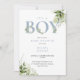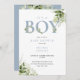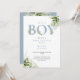 Its A Boy Dusty Blue Greenery QR Code Baby Shower Invitation