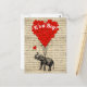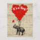 A fun cute vintage elephant floating on red love heart balloons with it's a boy announcement text template, easily add your own message