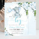 Celebrate the arrival of your little one with this charming 'It's a Boy' invitation featuring a cute elephant and blue balloon theme. Perfect for a baby shower, this design combines the adorable imagery of a playful elephant with soft blue tones, creating a whimsical and joyful atmosphere for your special celebration. Ideal for a baby boy's shower, this invitation will set the tone for a memorable event