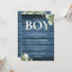 Its A Boy Greenery Blue Rustic Wood Baby Shower Invitation