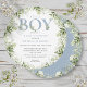 Its A Boy Greenery Dusty Blue Letter Baby Shower Invitation