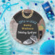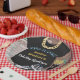 It was all a Dream... Kick it Ole School with1990's Hip Hop Throwback Baby Shower! It's a Lil Hip Hop Prince! Cute black bodysuit with fly gold chain, checkered sneakers with a blue and gold microphone on a graffiti brick background and blue wording.