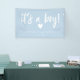 Modern blue baby shower banner for a boy's shower featuring a hand lettered script that says "it's a boy" with a heart under it. Customize this product by adding the mommy-to-be's name and event date.