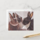 This postcard features a reproduction of my original oil painting of a bunny discussion.