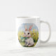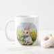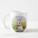 This is a mugs with a cute rabbit sitting on it.