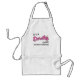 The apron is of very good quality. I used it while icing cookies. The dark colored icing washed off of the apron very well! The neck strap is sturdy and easy to resize on the adult size apron. The print was clear and well defined. I am glad I was able to personalize with name.