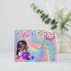 Colorful rainbow spirals and unicorns with 3 little Cutie Pie babies to choose from to congratulate the new parents with their little girl.
