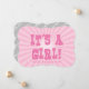 A cute way to announce a new addition to the family, this design reads "It's A Girl!" in retro lettering. Personalize with baby name and birth date or any personal message, and a photo on the back.