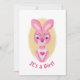 It's a girl announcement card with an illustration of a cute pink little bunny girl