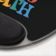 The plastic backing is nice and sturdy. The grippy pads underneath keep the mouse pad where I put it on my table. The pad the mouse sits on is cut well to fit the backing. The wrist pad is perfectly soft, supportive, and thick. I'm left-handed, and this mouse pad works just as well for me as it does for my right-handed friends. I'm the designer of HippieClecticHope products. I'm blown away by how well my intricate fractals turn out on the tangible items in the Zazzle Marketplace. This particular mouse pad ***appears*** like a 3D object... A mathematically-engineered rainbow black opal, inlaid under transparent fabric...