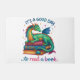 Vibrant, colorful design featuring a stack of books, colorful dragon on top, and a mushroom. The colorful text reads: "It's a good day to read a book". This design is available on a wide variety of products.