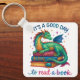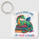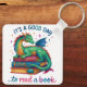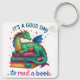 Vibrant, colorful design featuring a stack of books, colorful dragon on top, and a mushroom. The colorful text reads: "It's a good day to read a book". This design is available on a wide variety of products.