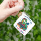 The key chain is made of metal and really sturdy. The flower design is really cheerful. The logo and colors are clear and crisp!