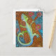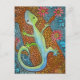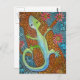 Vibrant, groovy gecko climbs on an orange tree against a turquoise sky. The image is filled with mosaic elements, and the entire 18” x 24” original was created with watercolors and ink. Subtle shading and 3D gold glitter elements make this little dude pop! Fun and funky!