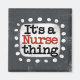 "It's A Nurse Thing" is a cute text design in gray with black and red text, along with a white accent shape and white textured whimsical dots surrounding it.