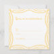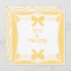 This customizable invitation card can be used to announce any type of party including baby showers, bridal showers, birthday parties, gender reveal parties and any other type of group gathering. With a general theme of bows and lace edges in an elegant yellow and white color combo, this frilly design is highly decorative and will impress all of your party invitees. Fill out your party details on the back using the blank lines. Other similar designs and color combos are available in my shop.