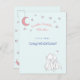 NewParkLane - Postcard for twin babies, featuring two cute rabbits, sitting and staring at the pink stars and the moon, and a sweet nursery rhyme quote: 'Twinkle, twinkle little star’, against a baby blue background.