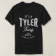 This is a product for Tyler with the text: It's a Tyler Thing, You Wouldn't Understand. This is a funny personalized and sarcastic outfit and present for friends and family members for birthdays, fathers day, or Christmas. If your first or last name is Tyler then this product is for you. Best Tyler ever, birthday present Tyler.
