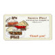Available in hats,shipping labels,letter heads,stickers,shirts,aprons,tote and shopping bags,flare buttons,cutting boards,serving tray,favor/take out boxes and puzzle coasters.