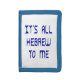 Text reading "IT'S All HEBREW TO ME" in a faux Hebrew font. A parody of the saying "It's all Greek to me" used when something is incomprehensible.