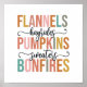 This colorful and fun fall design features a list of autumn favorites, including "Flannels," "Hayrides," "Pumpkins," "Sweaters," and "Bonfires." The text is presented in a bold, uppercase font with each word filled in with a different warm, earthy hue—ranging from soft pinks and oranges to muted greens and blues—perfectly capturing the cozy and vibrant spirit of the season. The words "hayrides" and "sweaters" are written in a flowing script, adding a touch of elegance and creating a nice contrast with the bold block letters. Decorative flourishes frame the script text, adding to the overall charm and appeal. This design is perfect for fall.