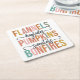 This colorful and fun fall design features a list of autumn favorites, including "Flannels," "Hayrides," "Pumpkins," "Sweaters," and "Bonfires." The text is presented in a bold, uppercase font with each word filled in with a different warm, earthy hue—ranging from soft pinks and oranges to muted greens and blues—perfectly capturing the cozy and vibrant spirit of the season. The words "hayrides" and "sweaters" are written in a flowing script, adding a touch of elegance and creating a nice contrast with the bold block letters. Decorative flourishes frame the script text, adding to the overall charm and appeal. This design is perfect for fall.