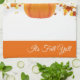 This kitchen towel is shown with a festive fall pumpkin print. Text It's Fall Yall