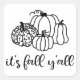 Cute autumn saying "It's Fall Y'all" with black and white pumpkins in the background.