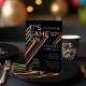 Challenge and invite your party guests to a game of laser tag with our fun, bright and cool laser tag themed birthday party invitation. The design features a color typographic design "It's Game On" with beams of bright multiple colored lights shooting off from the text. The black background sets the mood with the bight laser beams creating a bold look.