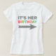 It's Her Birthday with an arrow pointing left t-shirts for twins, siblings, or best friends. Tee with rightt arrow sold separately.