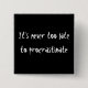 It's Never Too Late To Procrastinate! Pinback Button