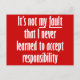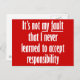 Know someone who can't accept responsibility even for the fact that they are never responsible? Let them know with this saying. Reads "It’s not my fault that I never learned to accept responsibility."