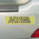 If it's stupid and it works, it's not stupid, proclaims the stencil on this bumper sticker, inspired by the military versions Murphy's Laws.